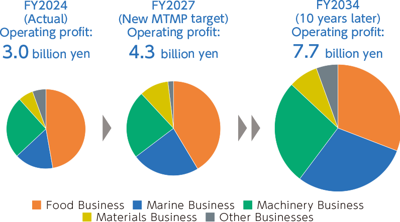 The main focus of our measures will be to grow profits and stabilize the earnings structure. The first is to further develop the earnings base established under the previous medium-term plan and continue building upon it with the new medium-term plan, and to accelerate the pace of profit growth towards the target of 7.7 billion yen in operating profit 10 years from now. The second is to transform our current earnings structure, which relies on the Food Business for roughly half of its profits. We aim to make it more stable by expanding the Marine Business and Machinery Business, ultimately creating three well-balanced pillars.